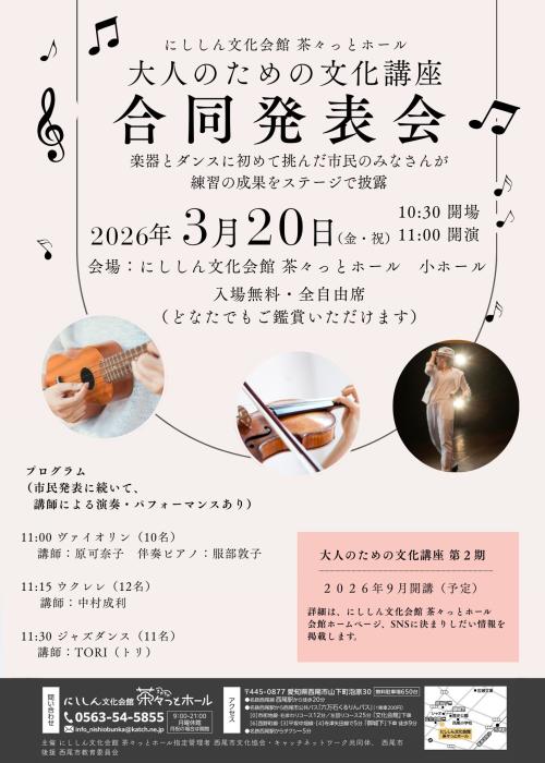 大人のための文化講座発表会 (ヴァイオリン、ウクレレ、ジ...