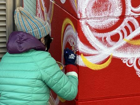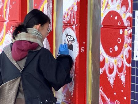 市民の手で完成するまちのアートに最後の仕上げの筆入れを行います。