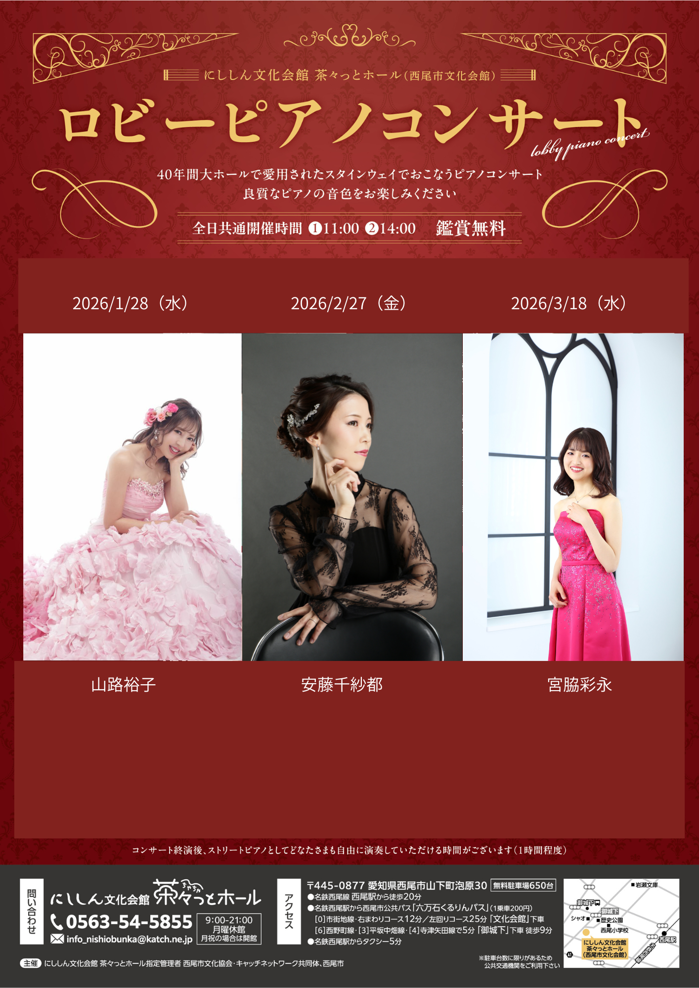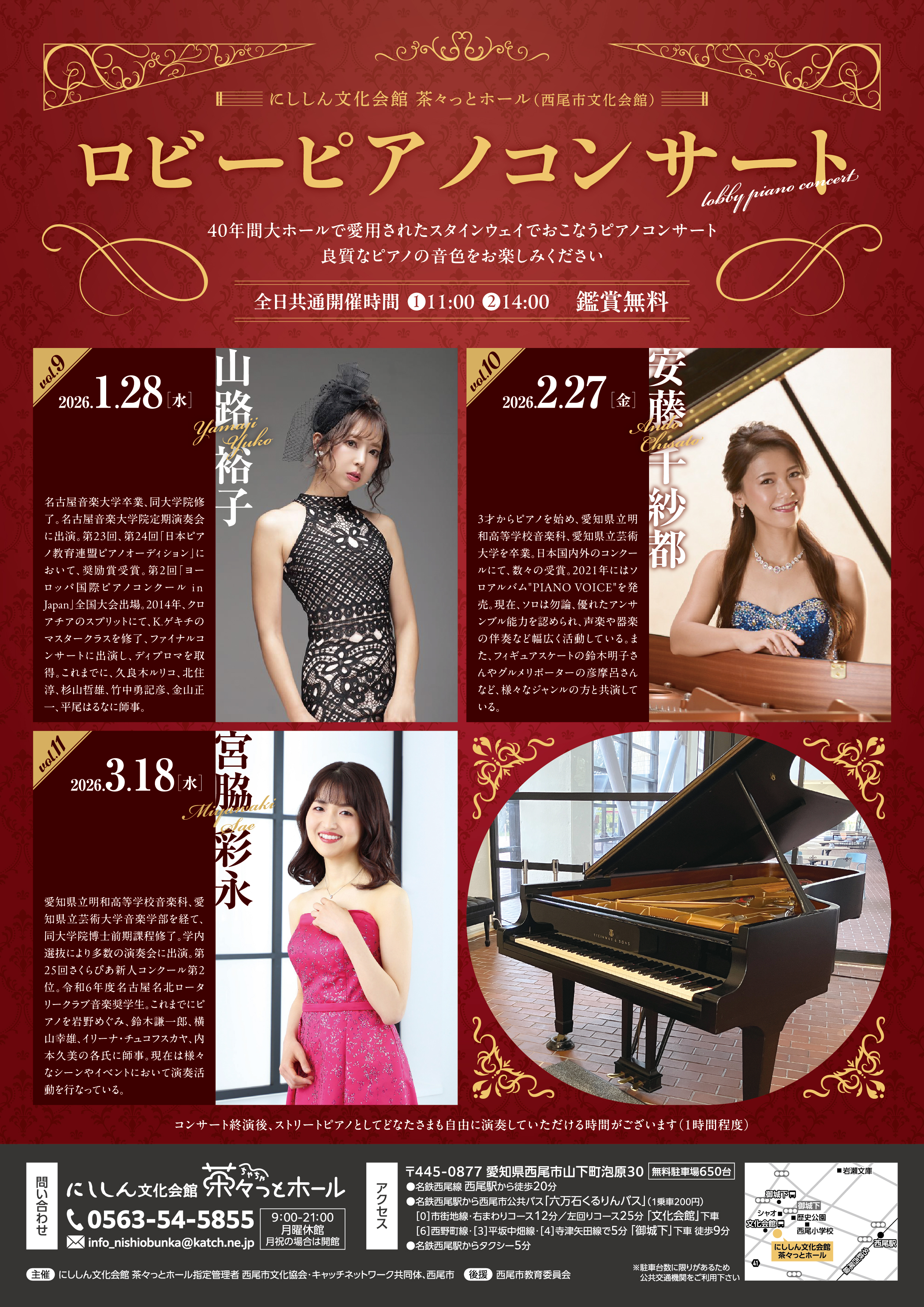 にししん文化会館 茶々っとホール ロビーピアノコンサート Vol.9~11
