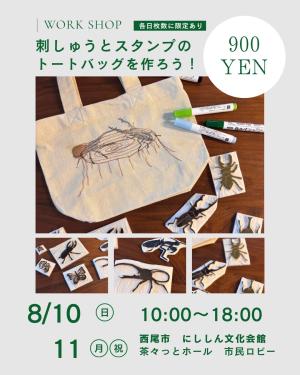 ・刺繍と昆虫のスタンプのトートバック作り ※有料