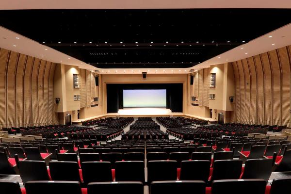 客席数1,111席(一般用1,105席、車いす用6席、親子観覧室5組)のワンスロープ型ホール。ワイドな舞台で大規模な演出ができ、コンサートや演劇・舞踊の公演から式典・講演会まで、多目的にご利用いただけます。